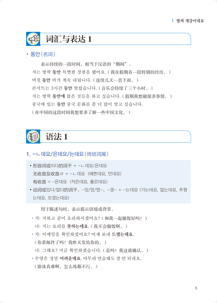 《新经典韩国语精读教程2》是为国内韩国语专业本科院校量身打造的教材,以新国标对韩国语专业学生的培养要求为编写宗旨,从最基础的韩国语发音开始入手,结合日常生活中经常接触的主题,帮助学生打好良好的韩国语语言基础。全书共20课,1-10课为语音学习阶段,11-20课为正式学习阶段。正式学习阶段每课包含课文、词汇与表达、语法、单词、练习、综合练习、学文化观天下、小故事大智慧、自我评价等板块。每课包含三段课文,形式为两段对话和一段短文,从基础阶段就注重将口语学习与书面语学习相结合。"词汇与表达"部分精选课文中出现的词汇和表达方式,在给出讲解的同时,通过例句加深学生的理解。"语法"部分讲解简洁明了,例句丰富。尽量避免使用生僻的语法术语,例句设计科学合理。课文后的练习以词汇和语法训练为主,帮助学生循序渐进地夯实语言基础。"综合练习"包含听说读写译各种题型,以输出为驱动,将各个语言功能综合起来进行训练,培养学生的综合应用能力。以学生为中心,激发学生的自主学习能力和语言探究潜能。"学文化观天下"将文化融入语言学习中,在培养学生跨文化交际能力的同时,帮助他们搭建多元化知识架构,建立国际化视角,养成对社会热点问题和不同文化现象思考的习惯。"小故事大智慧"精选了中国的一些成语故事、寓言故事、格言警句等,帮助学生树立民族自信的同时,实现用韩国语讲好中国故事的学习目标。"自我评价"采用思维导图的形式,诱导学生对该课主题进行全方位和系统的描述与分析,有助于学生对主题进行深刻的、开放性的思考。