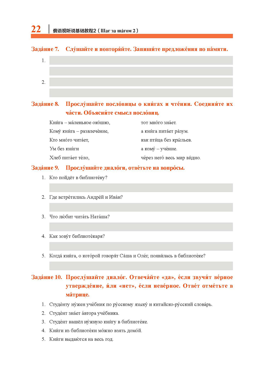 《俄语视听说基础教程2》是黑龙江大学国家级精品课程教材,专为我国高校俄语专业二年级第一学期视听说课程编写。全书有9个主题和2套测试题,主题包括礼节、做客、图书馆、学习、健康、职业、运动、城市等。在选材方面,9个主题均按照《高等学校俄语专业教学大纲(第二版)》中基础阶段的教学内容选择题材,与俄语实践课的教学内容呼应;在语料选择方面,音频材料均摘自俄罗斯主流媒体和广受欢迎的电视节目,语言生动,表达标准,便于学习与模仿;在练习方面,练习形式多样,体系性较强,可以帮助学生逐级提高听说水平,也可用于备考全国高校俄语专业四级水平测试。练习后附有答案和听力原文,方便学生自我检查。音视频文件可使用“外研随身学”App学习。
