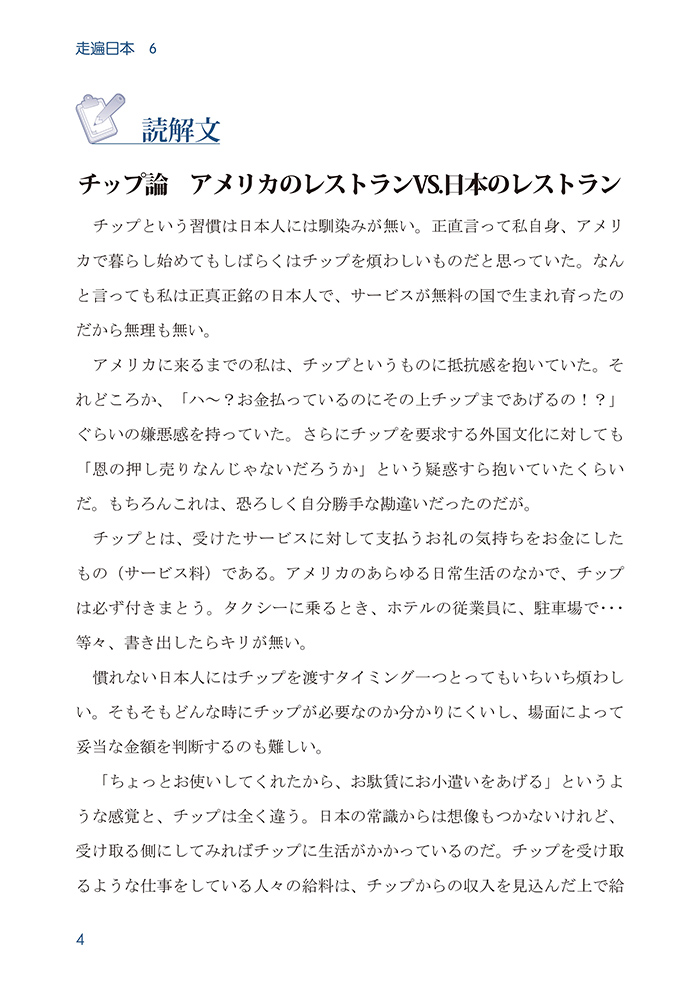 《走遍日本6》为“走遍日本”系列教材的第6册,按照新日本语能力考试N1水平和要求进行编写的。该教材主要以中国留学生在日本的学习和生活为主线,介绍了日本社会方方面面的知识。通过本册的学习,学习者不仅能掌握高级阶段语言知识,更能运用所掌握的知识解决生活、工作中常见的问题,以提高其语言交际能力和实际运用能力。同时学习者还能是很如了解日本的生活习惯、风俗、文化等,为今后的深造、工作和交际奠定基础。