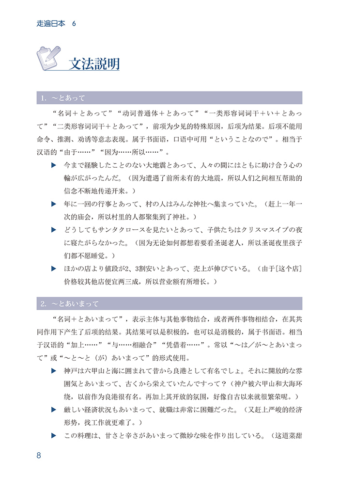 《走遍日本6》为“走遍日本”系列教材的第6册,按照新日本语能力考试N1水平和要求进行编写的。该教材主要以中国留学生在日本的学习和生活为主线,介绍了日本社会方方面面的知识。通过本册的学习,学习者不仅能掌握高级阶段语言知识,更能运用所掌握的知识解决生活、工作中常见的问题,以提高其语言交际能力和实际运用能力。同时学习者还能是很如了解日本的生活习惯、风俗、文化等,为今后的深造、工作和交际奠定基础。