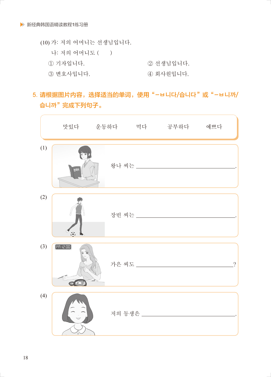 《新经典韩国语精读教程1 练习册》是《新经典韩国语精读教程1》的配套练习册。"新经典韩国语系列教材"以《普通高等学校本科专业类教学质量国家标准(外国语言文学类)》为指导,以《普通高等学校本科非通用语种类专业教学指南》为依据,以培养学生朝鲜(韩国)语运用能力、跨文化交际能力、思辨与创新能力为目标,结合新韩国语能力考试,全国高校朝鲜语专业四、八级考试等国内外朝鲜(韩国)语评价标准编写而成。