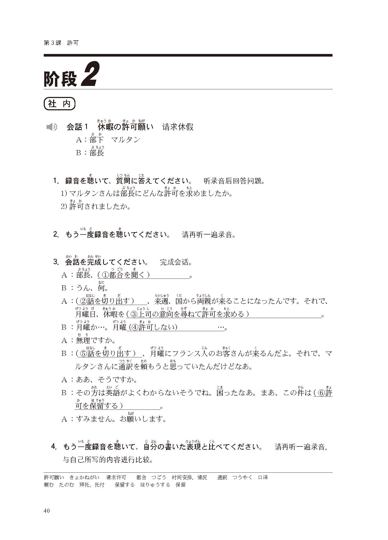 《商务日语(新版)》着眼点放在商务现场会话表达的实际应用上。广泛适用于商务人士、企业的进修人员及想要到日本企业就职的大学生等各层次的学习者。本书根据商务活动具体内容划分课别,提供丰富的分角色练习,并区分在公司内部和外部使用的不同表达方式。