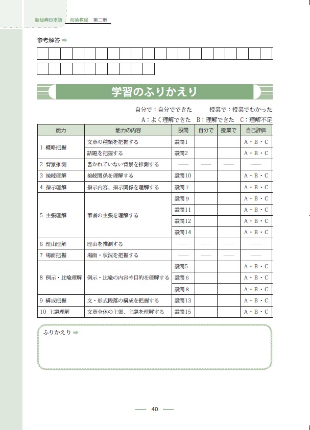 1. 设置"阅读理解能力自我评价表",帮助学生自主管理学习情况。