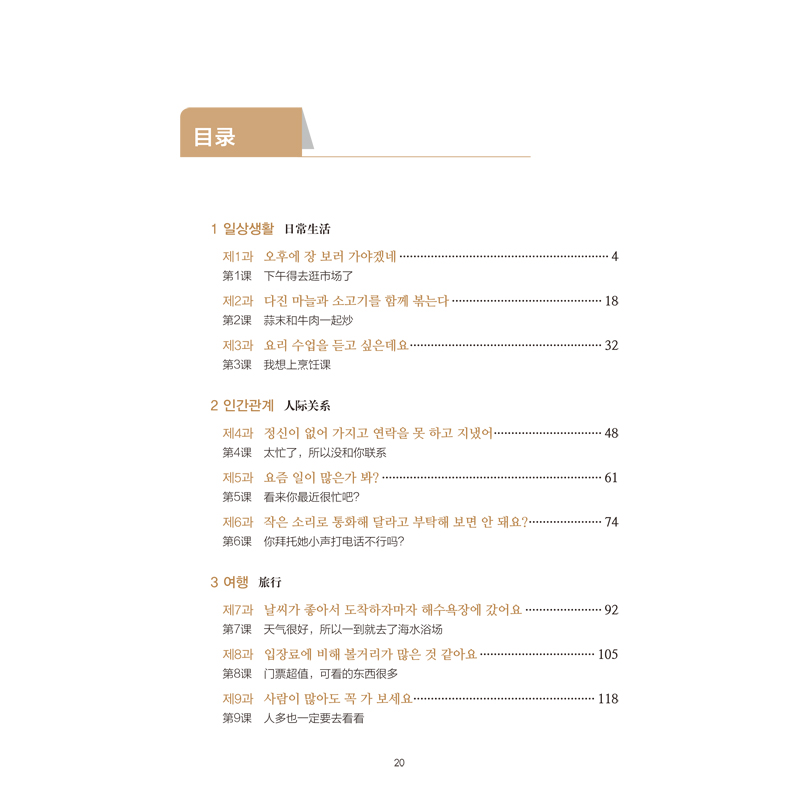 《新标准韩国语新版中级上》是该系列教材的第三册,对象为已经完成韩国语初级阶段学习的学习者,全书包括八个单元,每个单元分三课,围绕一个交际主题展开。本教材每个单元均由单元导入、课前导入、词汇和句型、词汇和句型练习、对话、对话活动、语法、语法练习、写一写、总结和评价构成,结构齐全、体系完整。学习者可以全程自主学习,从明确每课具体的学习目标,学习对话内容,练习语法知识点,完成交际任务到最后的自我检测与评价,实现 "学——测——评"学习的闭环。