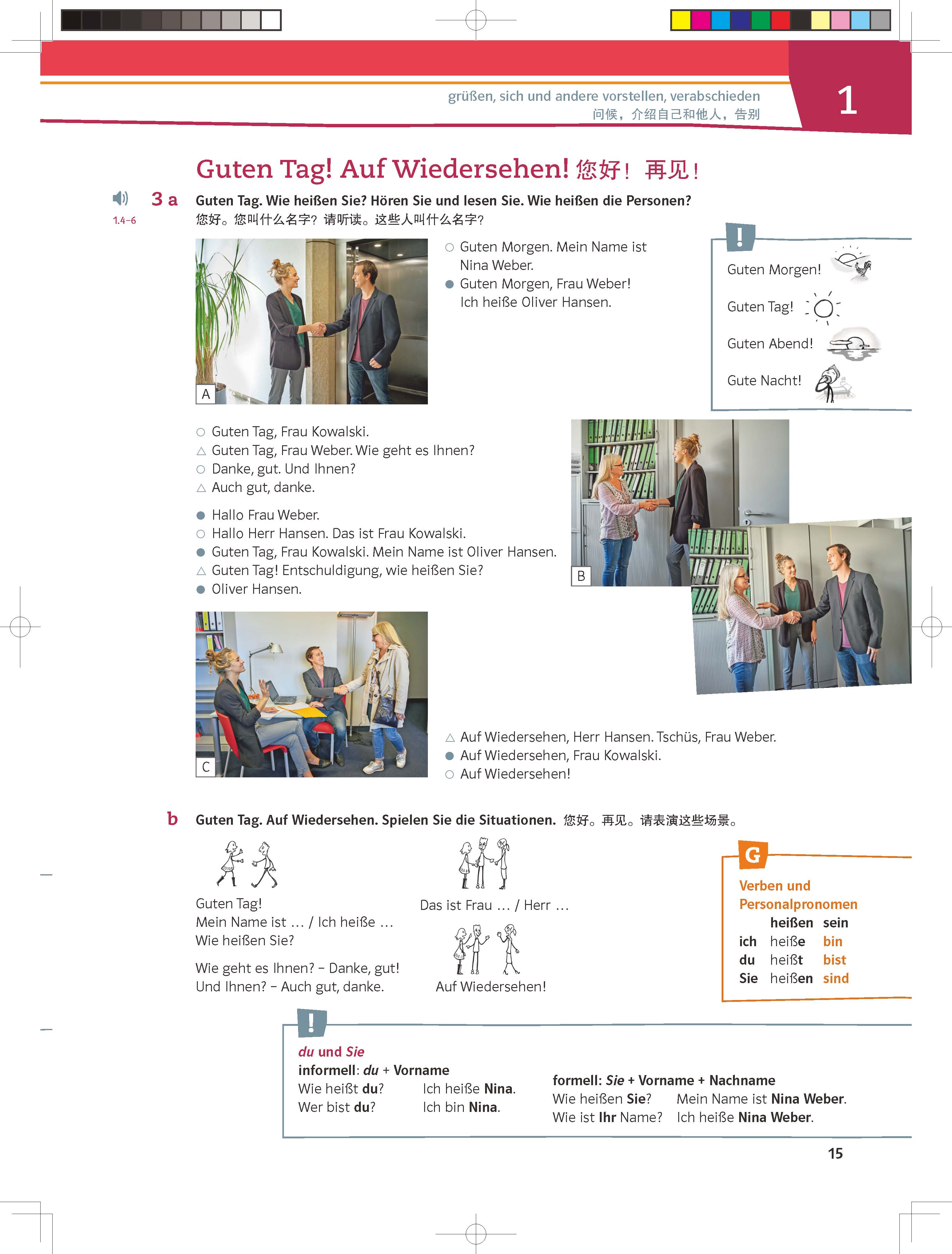 《你好!德语》系列教材的语法体系清晰,语言素材贴近德语文化圈的实际生活。在全面培养学习者德语能力的同时,还加强对德语交际能力的训练:书中不仅配有大量的音、视频资源,而且着重引导学习者运用所学内容进行自我表达和交流互动。此外,本套教材兼顾学习者对各类德语能力考试的备考需求,提供歌德证书、telc和ÖSD等考试的题型练习。