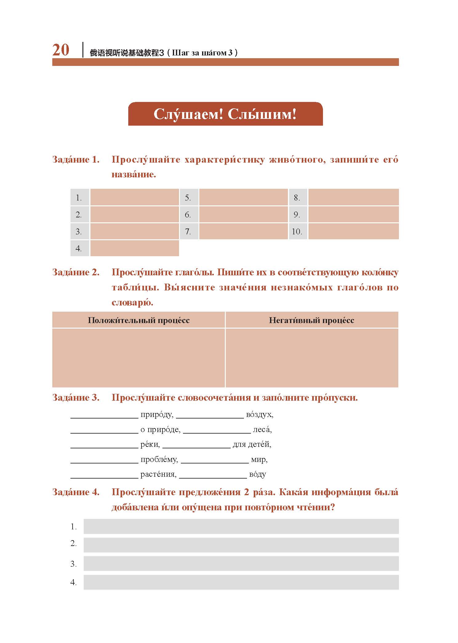 《俄语视听说基础教程3》是黑龙江大学国家级精品课程教材,专为我国高校俄语专业二年级第二学期视听说课程编写。全书有9个主题和1套测试题,主题包括爱情与婚姻、留学生活、生态环境、网络、大学生活、新闻媒体等。在选材方面,9个主题均按照《高等学校俄语专业教学大纲(第二版)》中基础阶段的教学内容选择题材,与俄语实践课的教学内容呼应;在语料选择方面,音频材料均摘自俄罗斯主流媒体和广受欢迎的电视节目,语言生动,表达标准,便于学习与模仿;在练习方面,练习形式多样,体系性较强,可以帮助学生逐级提高听说水平,也可用于备考全国高校俄语专业四级水平测试。
