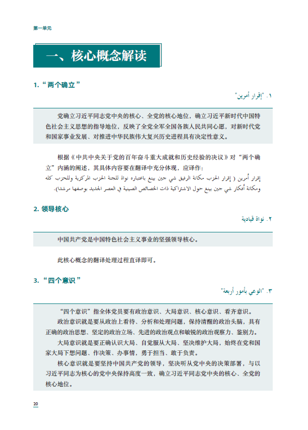 《汉阿翻译教程》将习近平新时代中国特色社会主义思想的学习与汉阿翻译能力的培养有机融合,实施价值塑造、知识传授和能力培养三位一体的课程思政理念。学生通过本教材的学习可以掌握时政文献汉阿翻译的能力,同时提高用阿拉伯语讲好中国故事的能力,推动中国更好走向世界,世界更好了解中国。