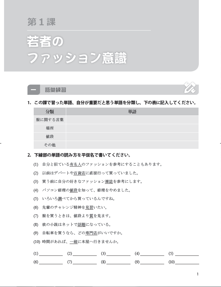 《新一代大学日语第一册》系列教材是由中日两国从事日语教学与研究的专家学者通力合作开发的大学日语教材。该教材依据《大学日语教学指南(2020版)》(以下称《指南》)《大学日语课程教学要求》《大学日语四、六级考试大纲》编写而成,适用于高等教育非零起点的大学日语学习者。《新一代大学日语第一册同步练习册》为《新一代大学日语第一册》的配套练习册。本练习册依据《大学日语教学指南(2021版)》(以下称《指南》)《大学日语课程教学要求》《大学日语四、六级考试大纲》编写而成。由于大学日语课时有限,为了帮助学习者夯实语言基础、巩固学习效果、提升自主学习的意识,《新一代大学日语(第一册)》编写团队结合主教材学习内容编写了练习册。本练习册包含教材(共12课)的单课练习和4个单元测验。单课练习由词汇练习、语法练习、翻译练习、作文练习组成,单元测验由听力、词汇、语法、阅读、造句五大模块组成。单元测验的题型对接大学日语四级考试。