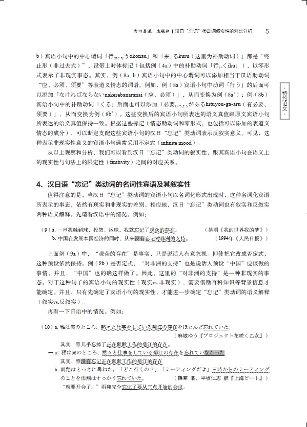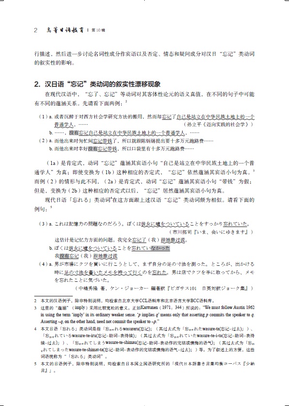 《高等日语教育(第10辑)》收录12篇日语研究方面的学术论文,其中特约论文是《汉日“忘记”类动词叙实性的对比分析》,日语教学研究方面,是 基于产出导向法的“日语语言学概论”混合式教学探究、关于「と思う」引用句前接的判断助动词消隐现象的考察、“内容与语言融合型”教学实践研究等。语言学方面,收录6篇论文,有基于文献计量分析的近七十年日本语篇研究、日语中介语语音语料库的建设研究、现代日语“有对自动词”致使句研究等。汉日对比研究1篇。具有很高的学术价值。