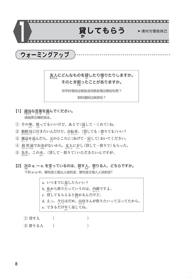 1.本书将给出体现不同人物关系(如上下级关系、远近亲疏关系)、不同情况的对话,并通过提问引导学习者注意因人物关系、实际情况、对话内容的不同带来的不同影响,使学习者能有意识地在不同场景下选择恰当的语言表达方式;