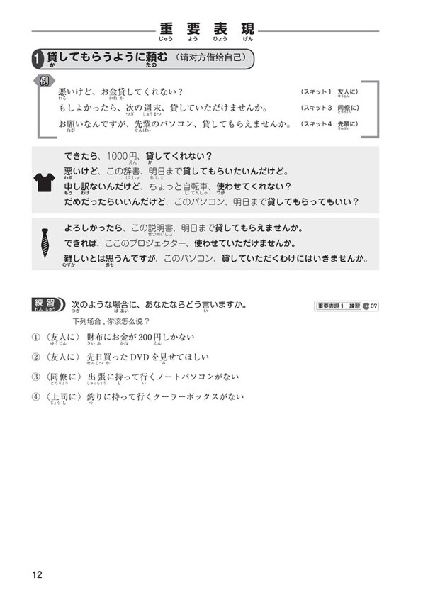 1.本书将给出体现不同人物关系(如上下级关系、远近亲疏关系)、不同情况的对话,并通过提问引导学习者注意因人物关系、实际情况、对话内容的不同带来的不同影响,使学习者能有意识地在不同场景下选择恰当的语言表达方式;