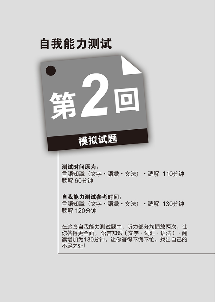 完全依据JLPT日语能力考试官网要求出题,文字、词汇、语法、阅读、听力,面面俱到!