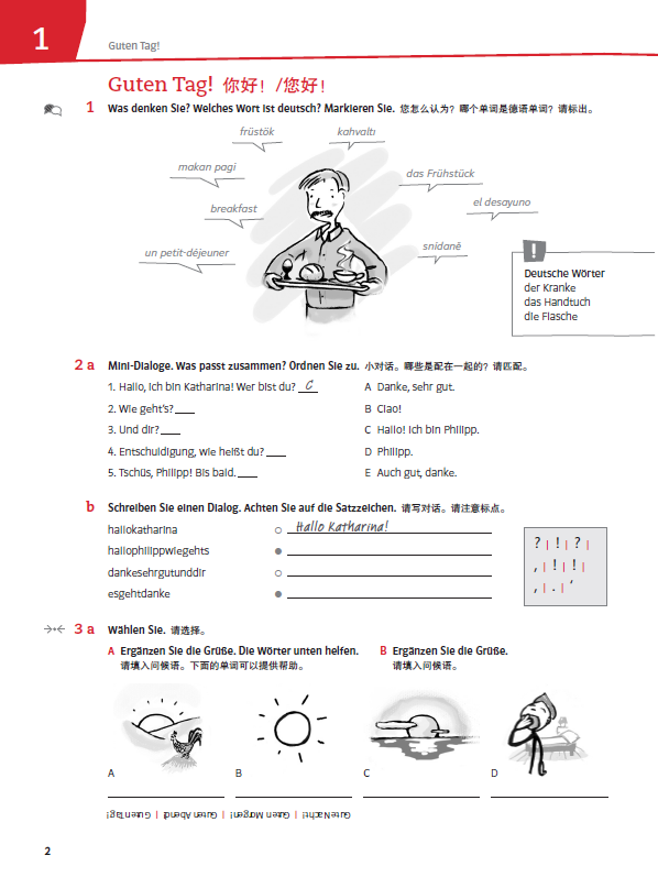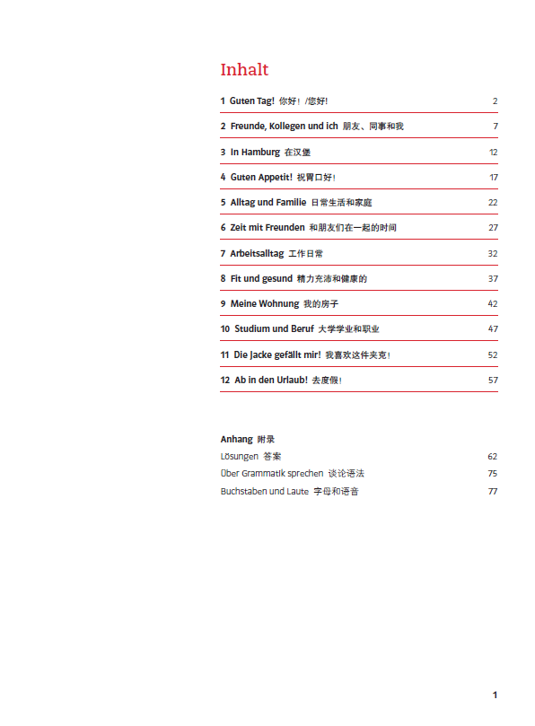 《你好!德语(视频版)》系列教材的语法体系清晰,语言素材贴近德语文化圈的实际生活。在全面培养学习者德语能力的同时,还加强对德语交际能力的训练:书中不仅配有大量的音、视频资源,而且着重引导学习者运用所学内容进行自我表达和交流互动。此外,本套教材兼顾学习者对各类德语能力考试的备考需求,提供歌德证书、telc和ÖSD等考试的题型练习。