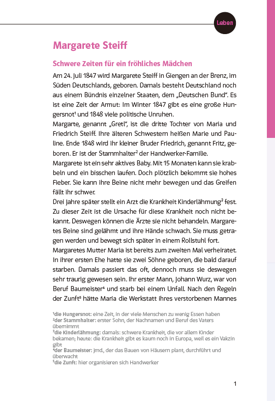 《开心学德语(青少版)B1轻松读物》引进自德国柯莱特出版社。套内共包含4本书,介绍了四位享誉世界的德国名人——玛格丽特•施泰夫(Margarete Steiff)、卡尔•本茨(Carl Benz)、安格拉•默克尔(Angela Merkel)和罗伯特•科赫(Robert Koch)。每本书围绕人物的生平、成就和影响展开。在介绍人物之余,也补充了一些与人物相关的背景知识。