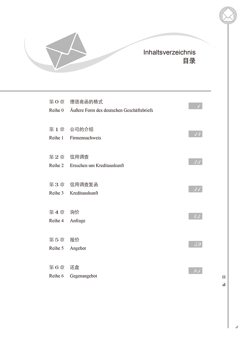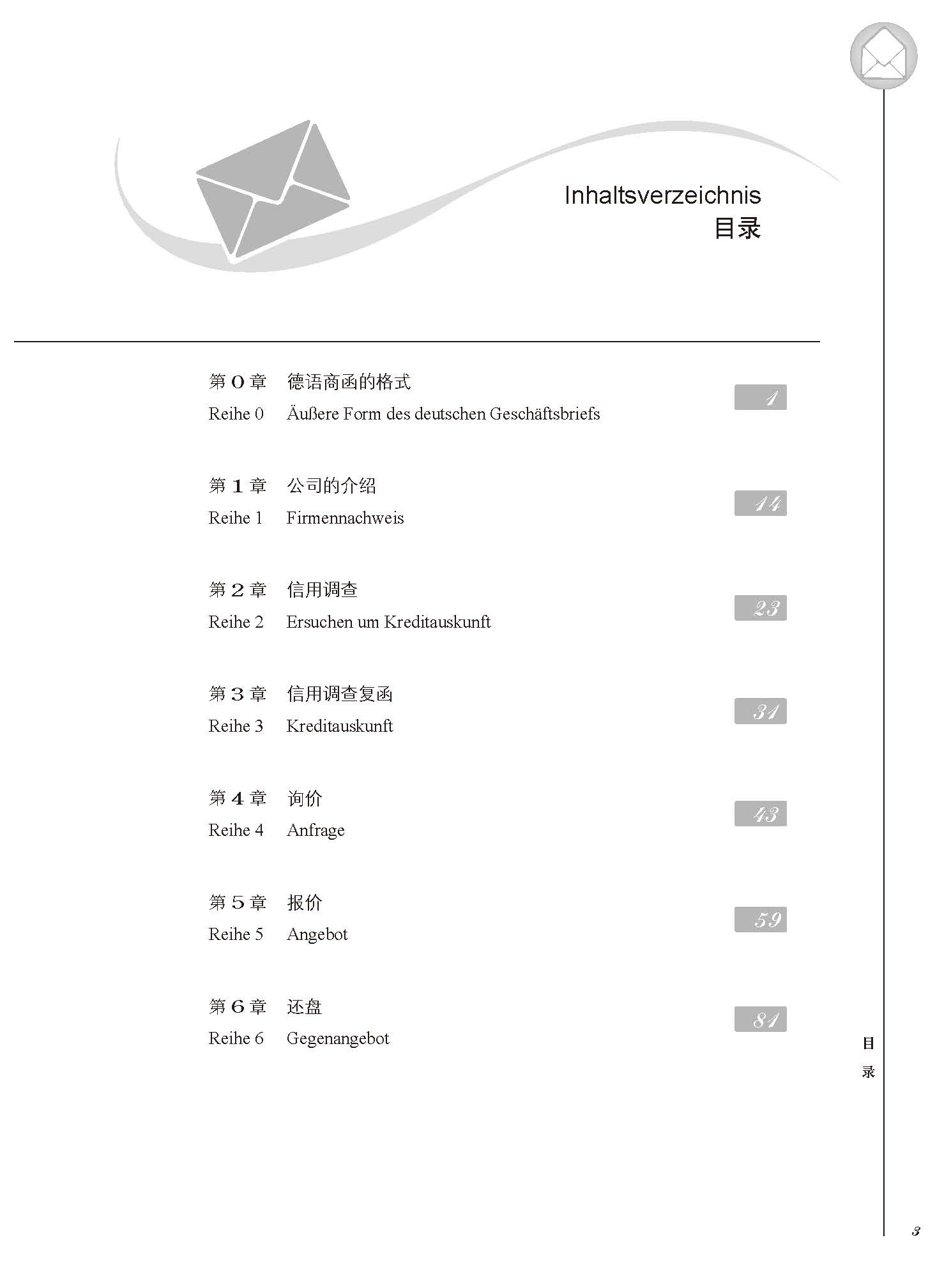 《德语商务信函写作(第二版)》 是专为从事德语外贸行业的人士以及有志于从事国际贸易的德语专业学生编写。内容涵盖商贸德语的方方面面。相比第一版教程,本书作者在《德语商务信函写作(第二版)》新增添了一些新的德语合同文本,更符合当今对德商务交往的需求。本书内容包括了外贸函件的各类格式、邮寄发送以及商务工作的各个业务环节等。结合近年国际贸易出现的新情况,可指导商务函件实际操作,贴合信息化时代要求,符合中德两国商务贸易往来的需求,为从事中德两国商务交往的专业人士,以及德语学习者提供有益指导。