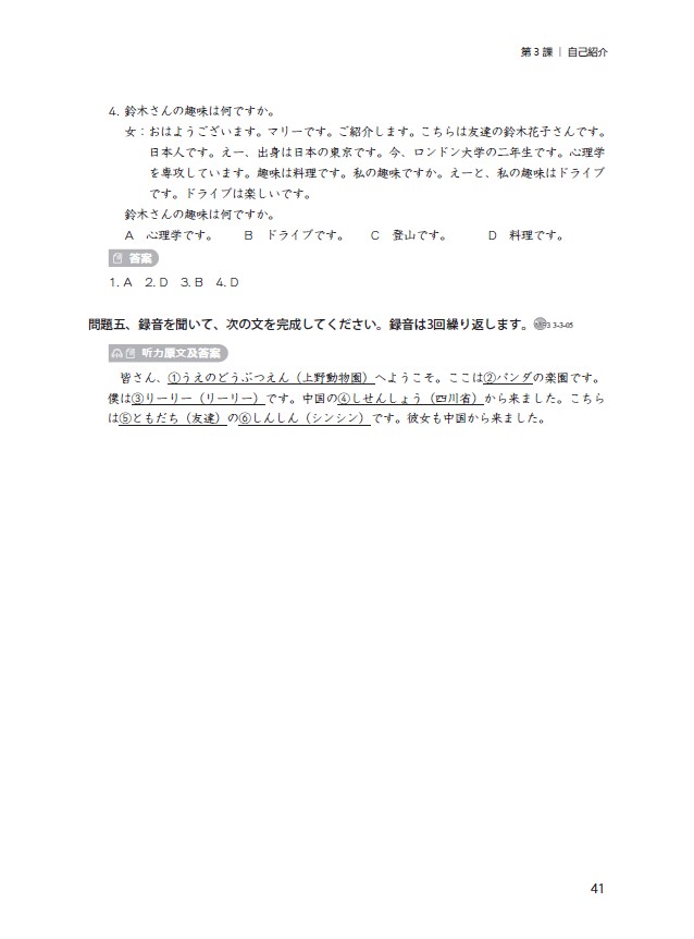 《新经典日本语听力教程第一册(第三版)精解与同步练习册》依据《普通高等学校本科专业类教学质量国家标准(外国语言文学类)》《普通高等学校本科日语专业教学指南》的培养目标、培养规格(素质要求、知识要求、能力要求)以及课程体系的要求编写而成。同时,在日语能力培养方面参照《JF日语教育标准》(日本国际交流基金会),采用进阶式日语能力设计模式。本书由中日两国长期从事日语教育的一线教师共同努力编写而成。
