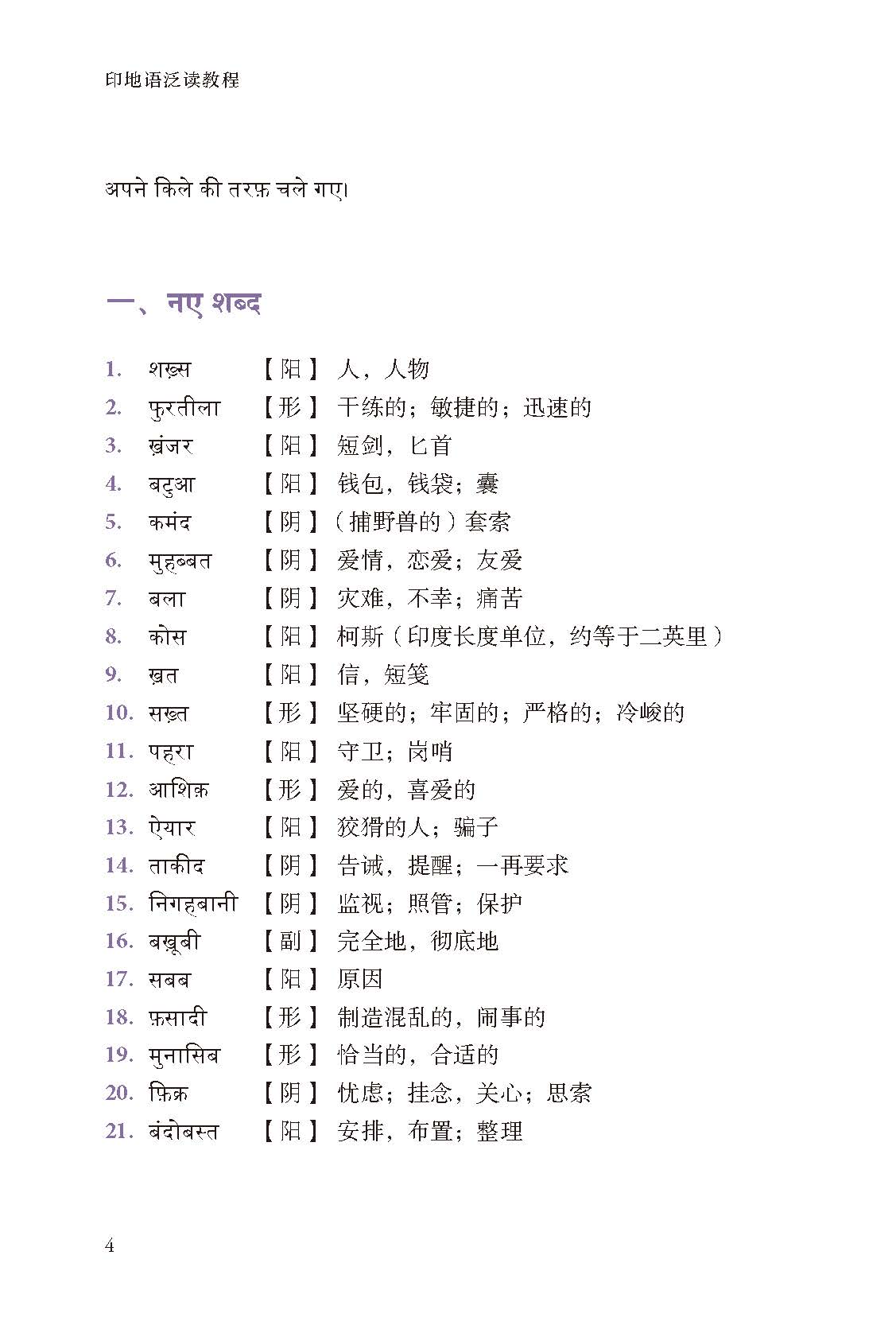 《印地语泛读教程》全书共15章,每章的内容主要包括2篇正文、词汇表、相关知识、练习及课外阅读等部分。该教程适合大学印地语专业二年级学生第二学期使用。详细前言、目录及样章见附文。本书:注重题材和体裁的多样化,通过时新的题材增强学生对印度现状的关注和敏感度,借由多样化的体裁扩大学生的阅读范畴、提升原文阅读兴趣,一方面切实增强学生对印度国情的了解,另一方面也可以帮助学生接触中国文化的印地语表达,切实增强印地语学习者的跨文化交际能力和对外传播能力。