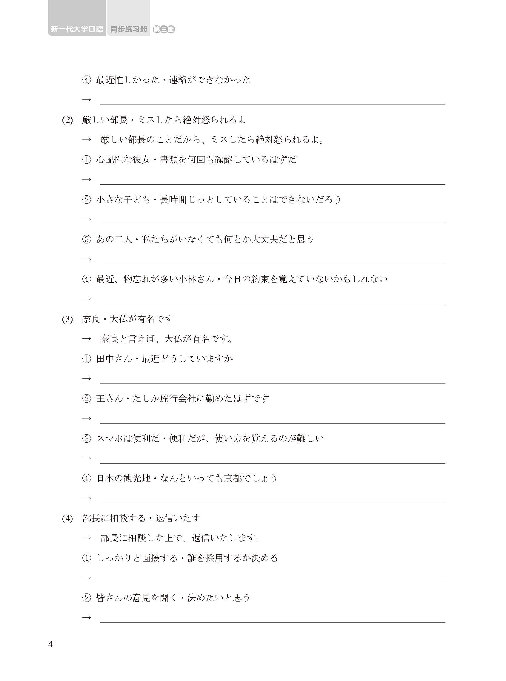 新一代大学日语第三册同步练习册