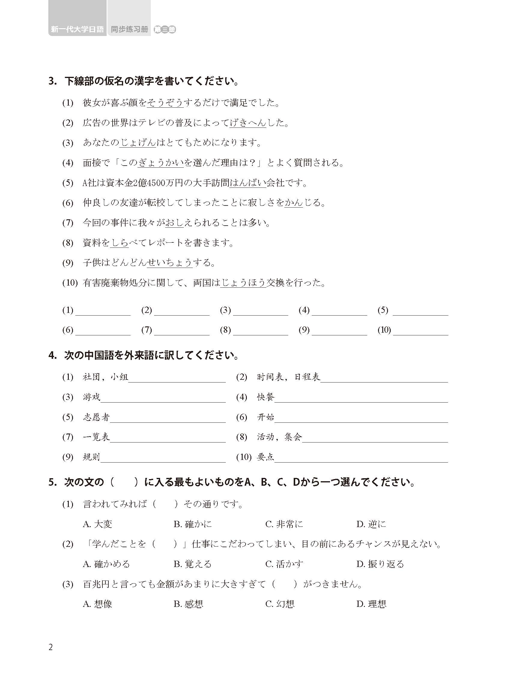 《新一代大学日语第三册同步练习册》:夯实基础,巩固提高。