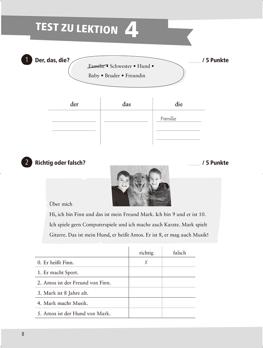 “少儿德语”系列教程(Die Deutschprofis)是一套专门为德语非母语(Deutsch als Fremdsprache)学习者编写的德语学习教程,由德国柯莱特教育出版社(Klett)出版发行。本书为《少儿德语 学生用书 A1 配单词图册》配套同步测试,是“少儿德语”系列德语教材中的分册,提供每单元的单元测试,阶段测试。