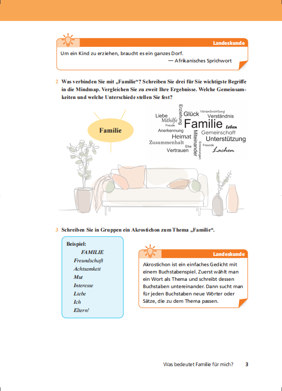 《新经典德语2学生用书》共4个主题模块(Modul),每个模块均包含3个课程单元和1个复习拓展单元。课程单元用于新主题、新词汇、新语法的系统学习;复习拓展单元用于语言能力、文化能力和综合能力的拓展,实现形式包括语法总结与练习、阅读/听力拓展、综合项目实践。每个课程单元基于“产出导向法”设计结构,体现“驱动—促成—评价”的教学流程。《新经典德语》系列教材以《普通高等学校本科专业教学质量国家标准》和《普通高等学校本科外国语言学文学类专业教学指南》为指引,以“产出导向法”为核心教学法基础,以落实立德树人为根本任务,在全国范围内组织编写的、面向德语专业本科一、二年级的综合性语言教育教材。该套教材共分4册,各册均配有学生用书、教师用书及配套听说训练等。