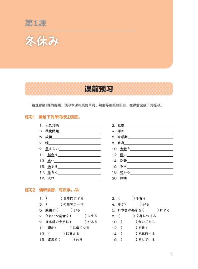 本书包含16课,每课分为“课前预习”“课后总结”“自我检测”三部分,在帮助学生打好语言基础、提高语言的应用能力的同时,培养学生的自主学习能力。”新经典日本语”系列教材依据《外国语言文学类教学质量国家标准》和《JF日语教育标准2010》,并结合外语教学的最新发展理念设计编写而成。在认真研究《高等学校本科外国语言文学类专业教学指南》内容的基础上,结合全国高校日语教师的使用反馈,总结十年来教材编写与使用经验,融入新的教学理念与教学方法,第三版教材对现有教材进行了修订。