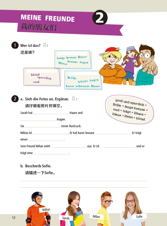 “少儿德语”系列教程(Die Deutschprofis)是一套专门为德语非母语(Deutsch als Fremdsprache)学习者编写的德语学习教程,由德国柯莱特教育出版社(Klett)出版发行。本书为《少儿德语 学生用书 A2 配单词图册》配套同步测试,是“少儿德语”系列德语教材中的分册,提供每单元的单元测试,阶段测试。