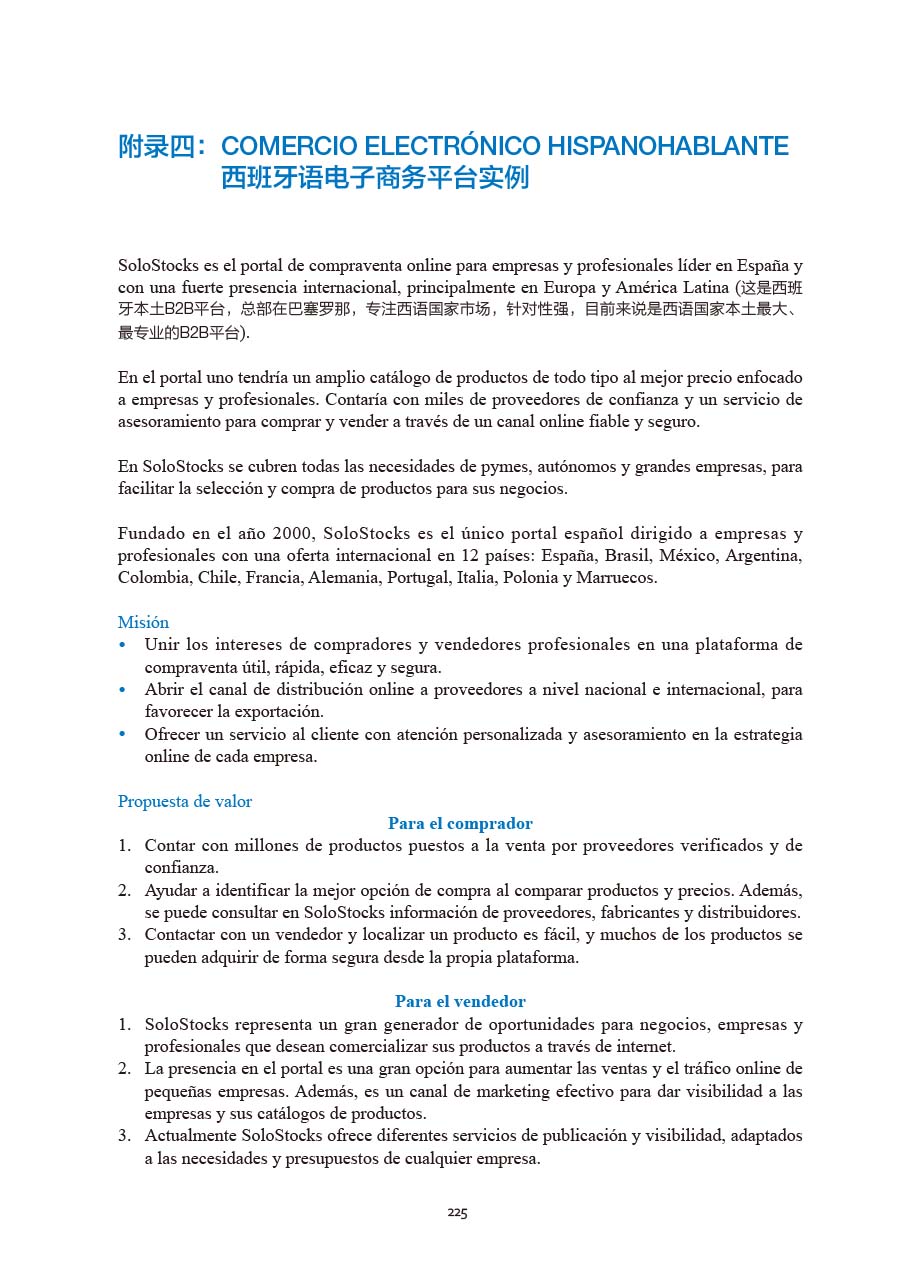 一、中西双语兼顾。本书的西班牙语部分具有独特的实用性,与行业实际紧密挂钩,采用清单化格式叙述,方便学生理解外贸工作的实际流程;中文部分则更加精到,集中阐述,画龙点睛,帮助读者理解实务内容。