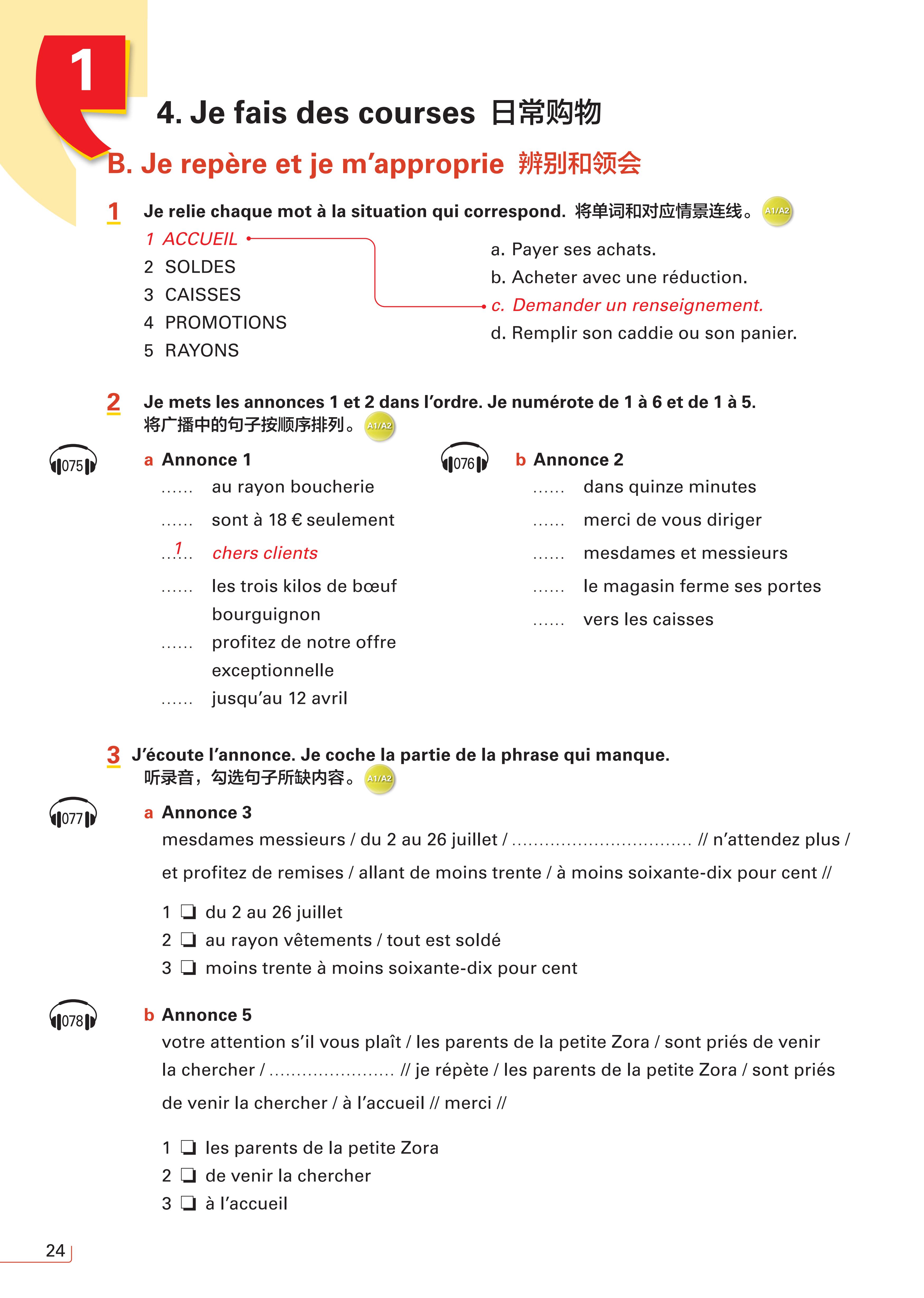 ·三步进阶,沉浸学习:主题涵盖24个日常实用情景,从观察、倾听、理解到辨别和领会,再到练习和互动,循序渐进,全面提升法语听力理解和口语表达能力。