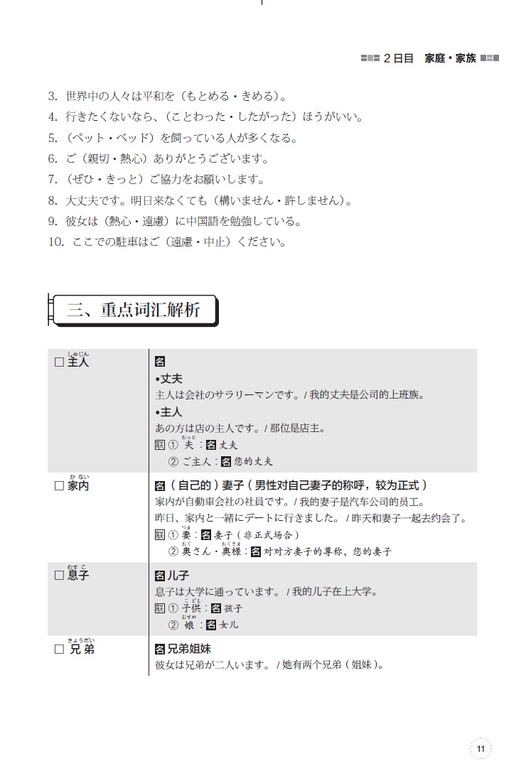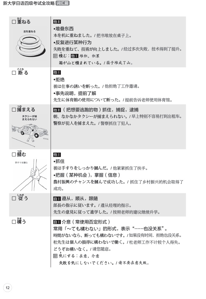 《新大学日语四级考试全攻略词汇篇》根据《全国大学日语四、六级考试大纲(2023版)》的最新要求进行编写,将考纲词汇平均分配到31天的学习中。1—25天为常规化学习,每天的内容包括词汇一览自测表、挑战练习、重点词汇讲解、每日练习。自测表中含有约80个日文单词,考生可通过自测表标注出未掌握的词汇,有针对性地学习;挑战练习板块包含10道易混淆词汇选择题,帮助考生明确考点;重点词汇讲解板块只选取自测表中约15个重点单词提供讲解、例句;每日练习板块提供约20道练习题,用于巩固检测。26—31天为知识点分类自测及模拟练习。本书在设计上重点明晰,学练结合,有助于考生提高学习效率,减轻背词负担。