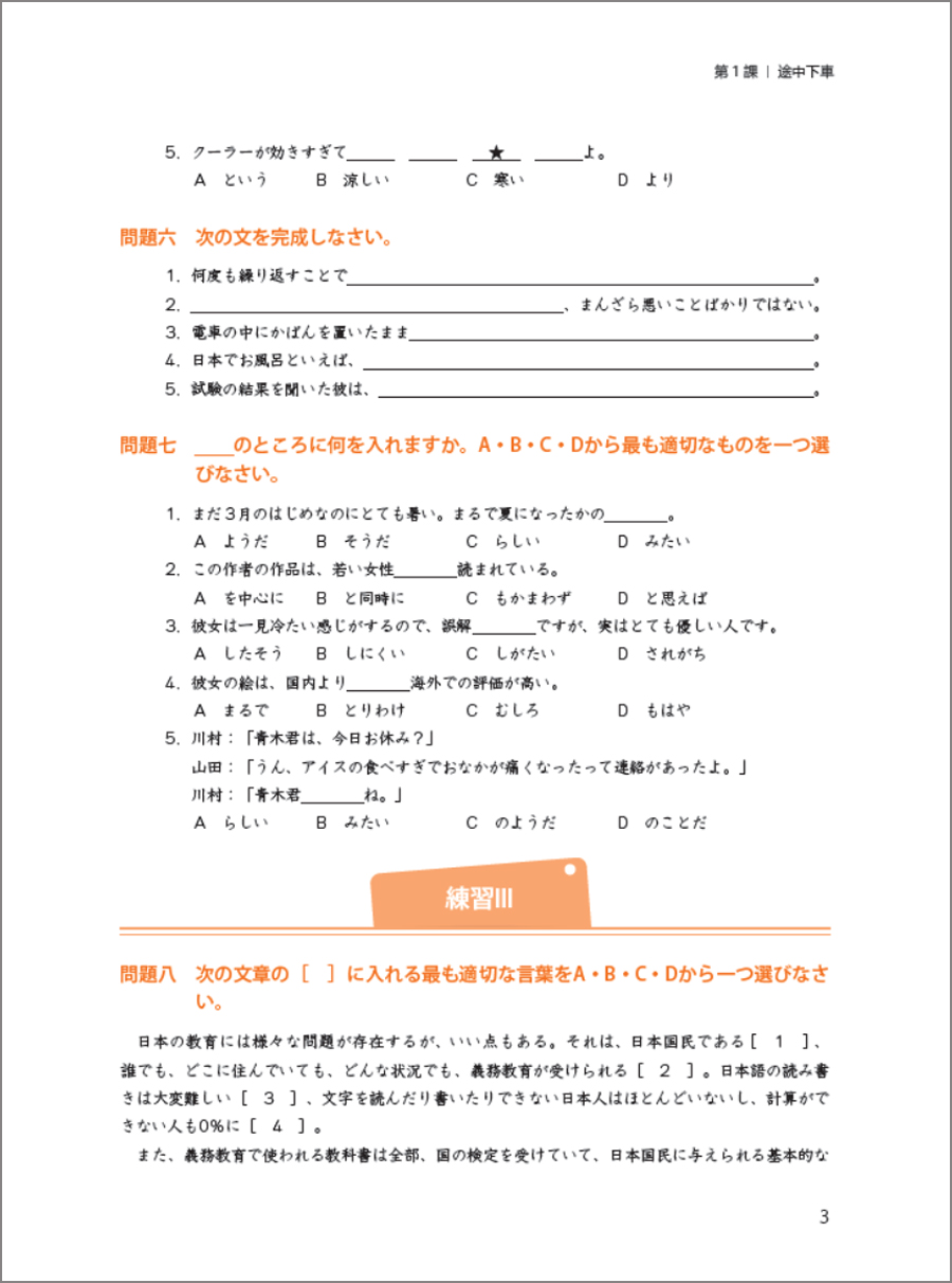 本书包含16课,每课分为“实战演练”和“小测试”两部分,在帮助学生打好语言基础、提高语言的应用能力的同时,培养学生的自主学习能力。”新经典日本语”系列教材依据《外国语言文学类教学质量国家标准》和《JF日语教育标准2010》,并结合外语教学的最新发展理念设计编写而成。在认真研究《高等学校本科外国语言文学类专业教学指南》内容的基础上,结合全国高校日语教师的使用反馈,总结十年来教材编写与使用经验,融入新的教学理念与教学方法,第三版教材对现有教材进行了修订。