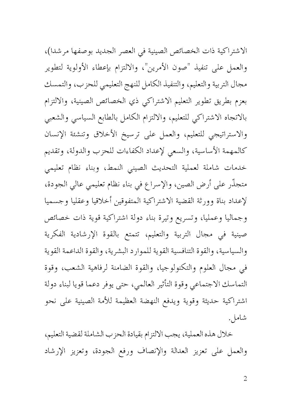 《教育强国建设规划纲要(2024-2035年)》(阿拉伯文版)共11个部分,以习近平新时代中国特色社会主义思想为指导,深入贯彻全国教育大会精神,紧扣中央关心、群众关切、社会关注,坚持目标导向、问题导向和效果导向,紧紧围绕教育的“三大属性”,以“六大特质”为主要特征、以“八大体系”为基本结构、以正确处理“五个重大关系”为关键要求,将深化改革贯穿全文,突出教育科技人才一体统筹部署,推出一系列创新举措,推动从教育大国向教育强国的系统跃升。