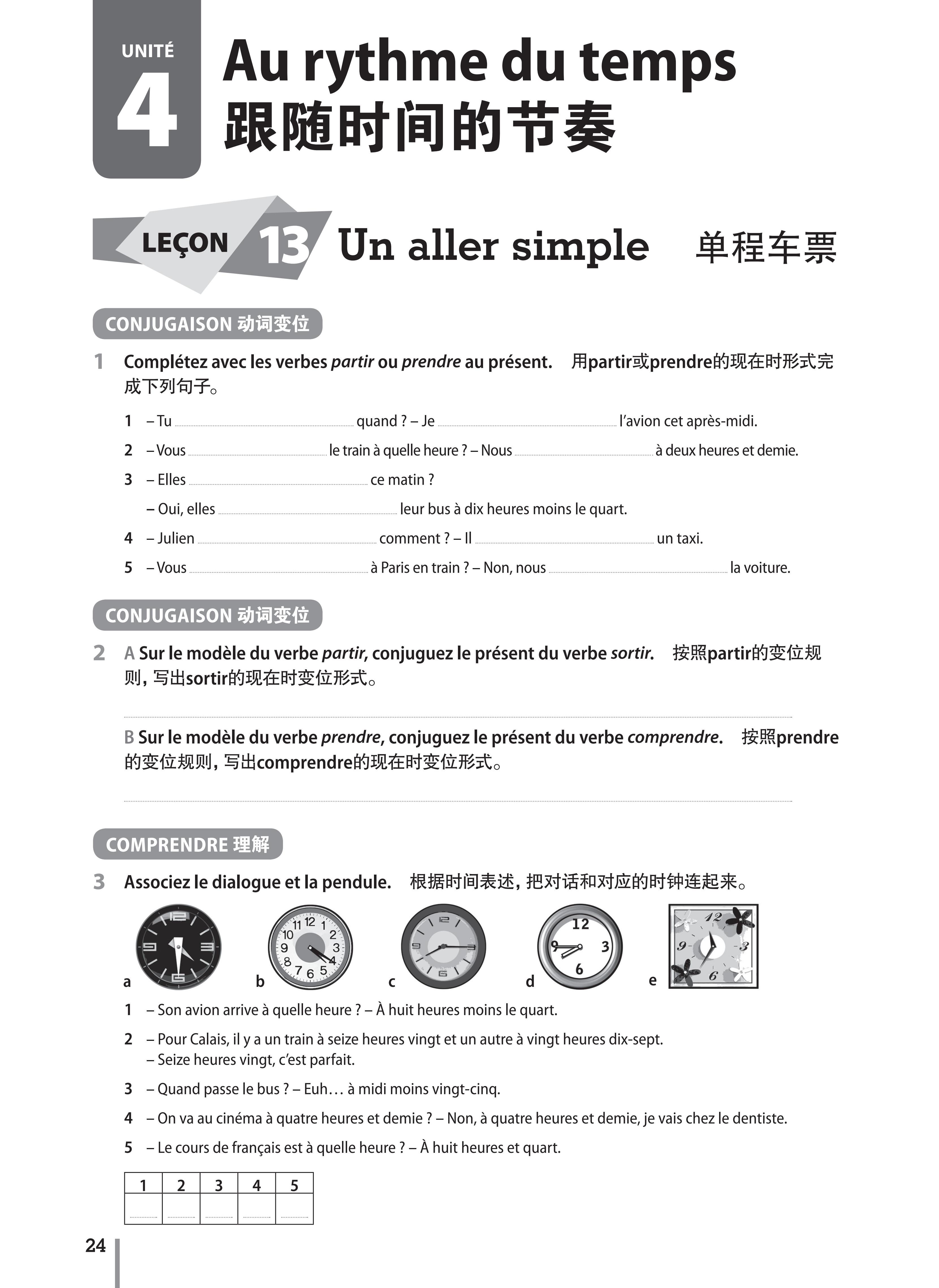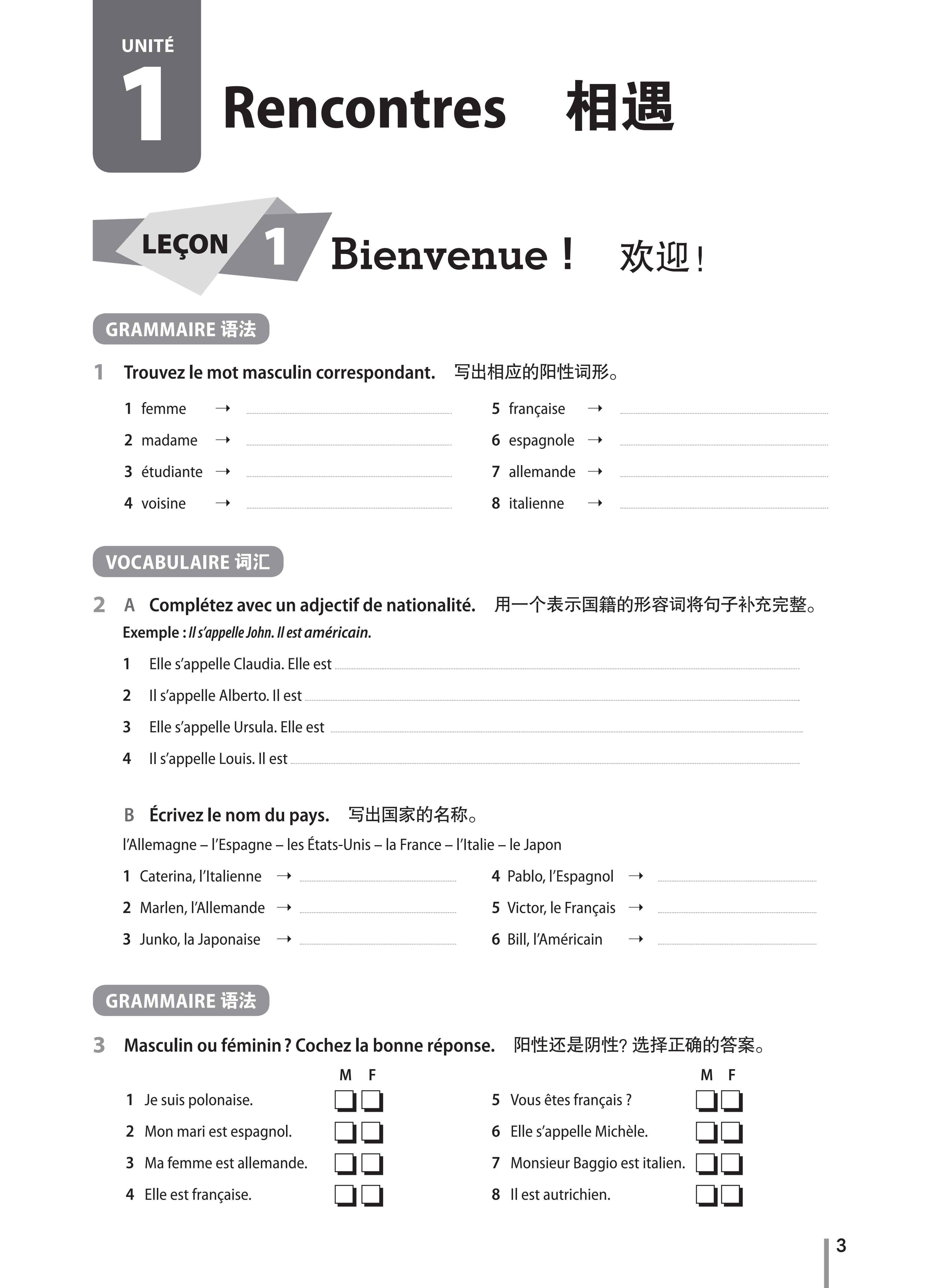 《你好!法语(1)(练习册)(第二版)》为《你好!法语》系列A1级学生用书配套的练习册,对应学生用书每课的内容,按照语法、词汇、动词变位、理解、表达等板块设计补充练习,既适用于课堂教学,也可供学生业余自学训练。