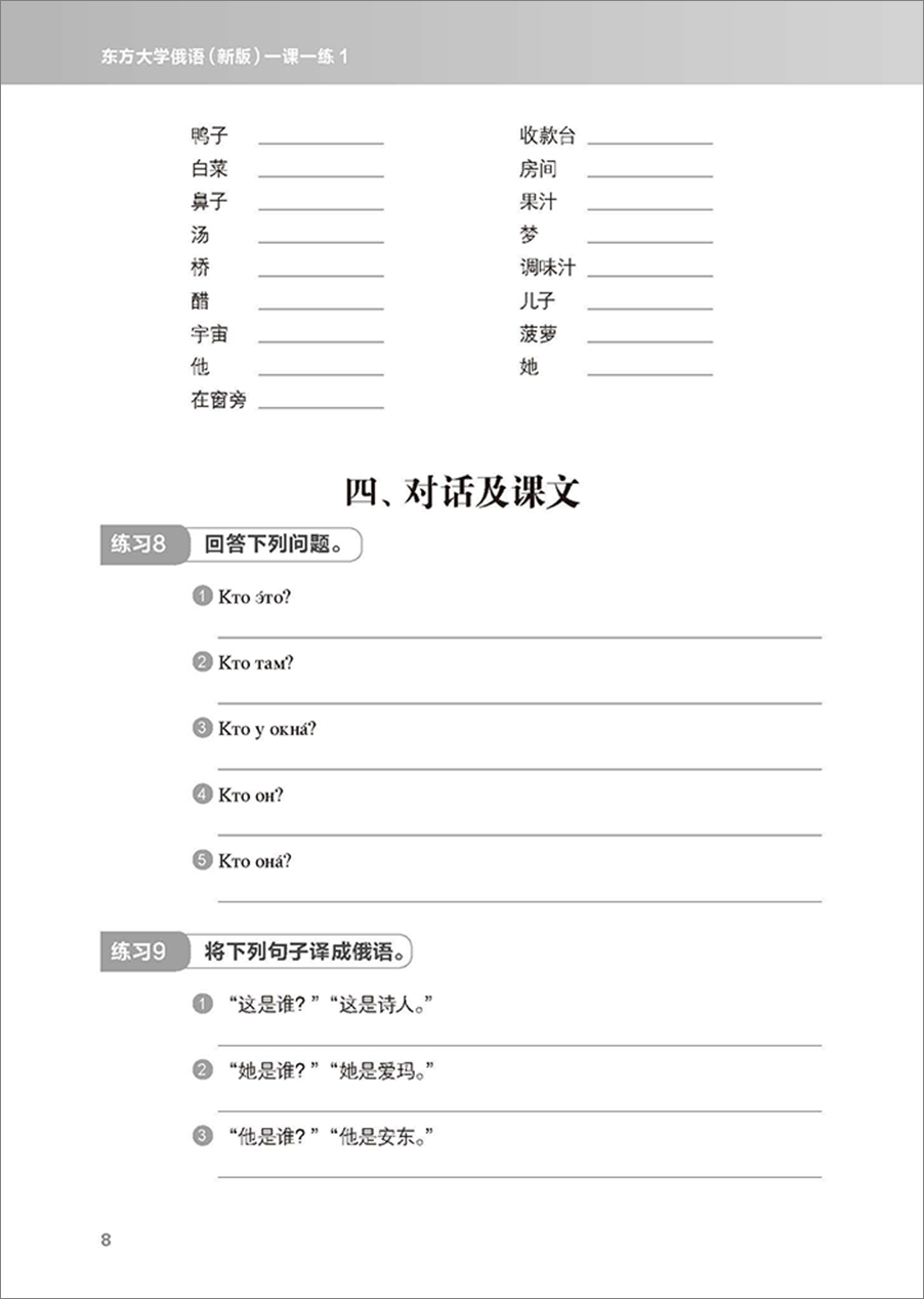 大学俄语东方(新版)(1)(一课一练)