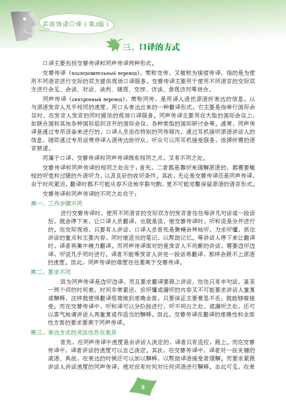 《实战俄语口译(第2版 附光盘)》由口译概论、口译一般技能训练、口译综合技能训练三部分组成。本教材主要在于总结俄语口译的特点和规律,构建口译技能训练的基本模式。