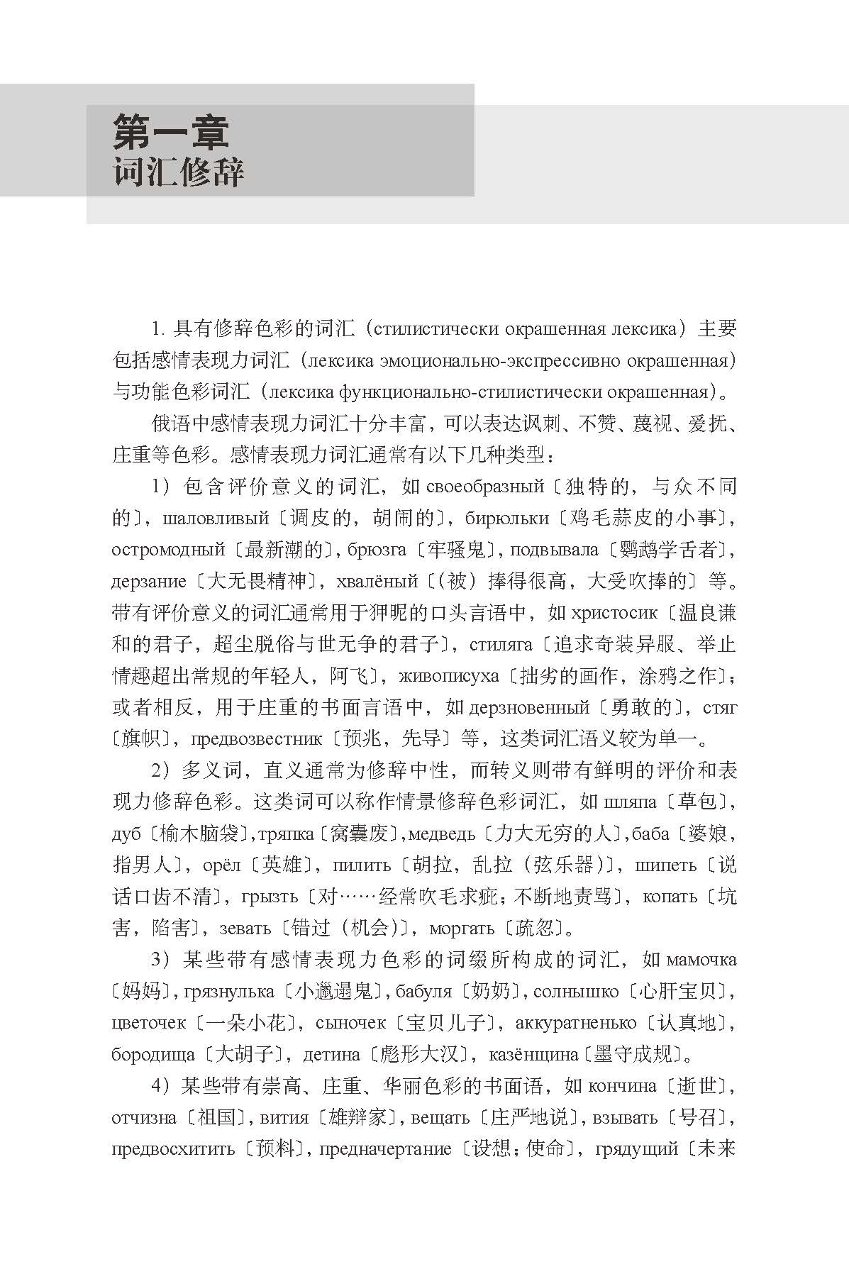 《现代俄语修辞学教程》是王福祥教授主持的《现代俄语系列丛书》中的一部,是普通高等教育“十一五”国家级规划教材。针对我国高校俄语专业高年级学生、研究生以及实践课教师而设计,《现代俄语修辞学教程》内容包括现代俄语修辞学概述,词汇修辞、熟语修辞与构词修辞,语言的形象表现力手段,词法修辞,句法修辞,功能修辞学等几大部分。《现代俄语修辞学教程》重在研究现代俄语修辞学的修辞资源与功能语体,因为这些知识对俄语学习和教学最具参考价值。《现代俄语修辞学教程》理论讲述简单明了,全面而不繁杂,例证丰富,实用性强。适合大中专院校俄语师生使用,也是俄语爱好者和所有希望提高俄语口语修养人士的良师益友。