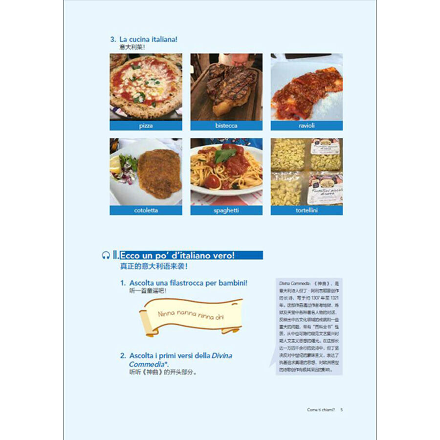 《大学意大利语听说教程1》是"大学意大利语听说教程"的第一册,本系列是为大学本科意大利语专业一二年级编写的听说课教材。全教材在课程设置上与王军教授主编的"大学意大利语教程"的语法教学基本保持同步,使学生在语法学习中同步配合听说训练。本套教材注重融入意大利社会、人文、历史等文化元素,使学生在学习语言的同时加深对意大利文化的了解;语言生动真实,面向意大利人生活的方方面面;练习题型设计多样化,兼顾听说读写各项语言技能训练;练习难度循序渐进,让学生逐渐适应高难度高强度训练。