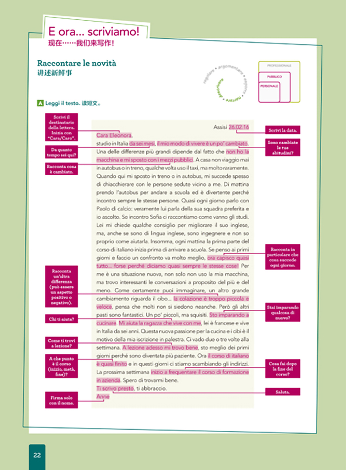 ● 根据中国学生特点,编写《走遍意大利 学习辅导 2(B2)》,添加系统性语法、词汇讲解和必要的译文