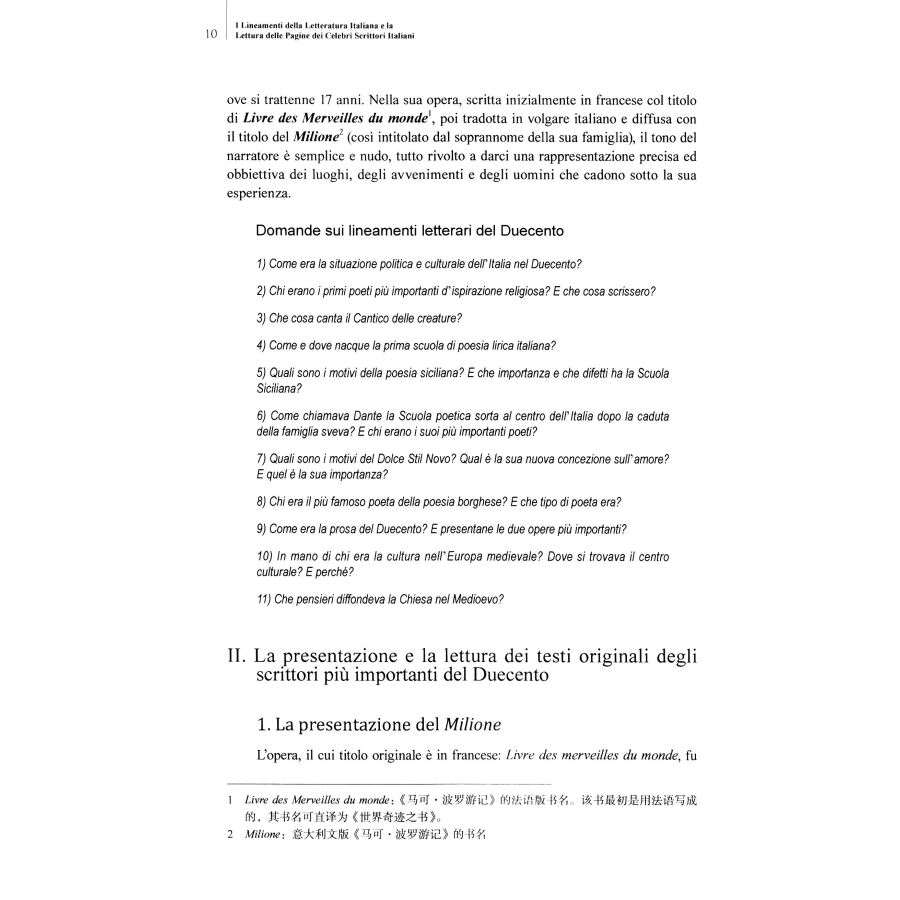 《意大利文学简史及名著选读》是中国首部意大利语的“文学简史及名著研读”,非常重视学生参与教学活动,知识含量大,语汇丰富。通过本书的学习,学生可以对意大利文学发展过程有初步的系统了解,并大幅度地丰富文学语汇,提高阅读和表达能力。此教材的注释丰富详尽,采用了文化注释与语言注释相结合、中文注释与意文注释相补充的注释方法,十分符合我国意大利语专业本科三、四年级学生的知识状况和意大利文学教学的需要。