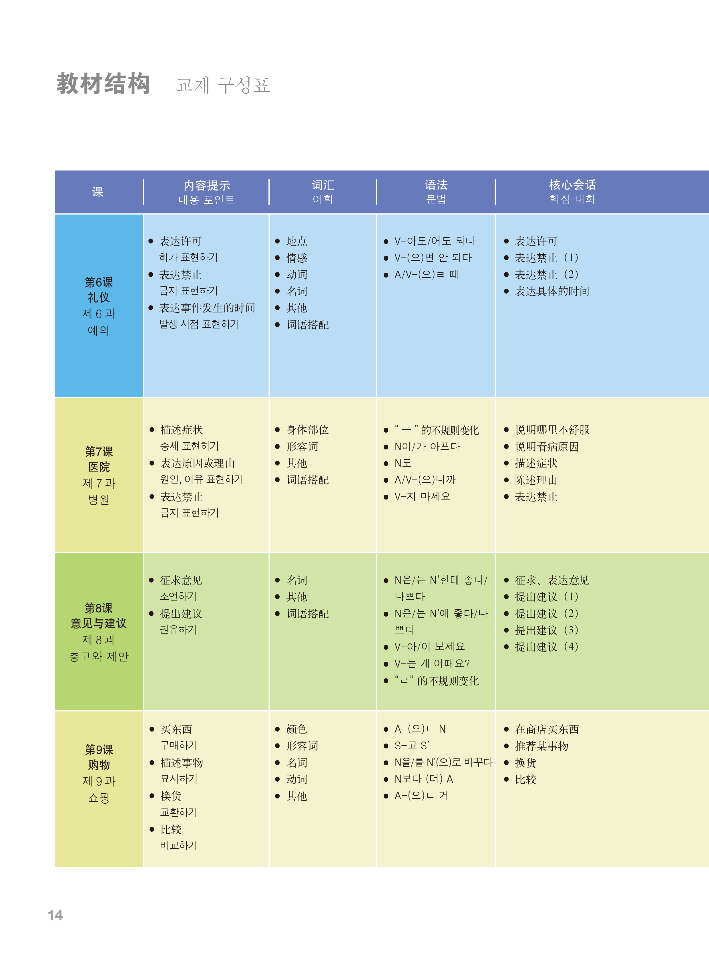《首尔大学零起点速成韩国语2(MP3版 2018新)》综合考虑课程结构以及学习者的水平,构建每课的体系。体系结构包括贴合主题及情境的语法和表达方式、包含这些语法的核心会话、对话练习等,符合授课的一般过程,也有利于学习者理解和应用。