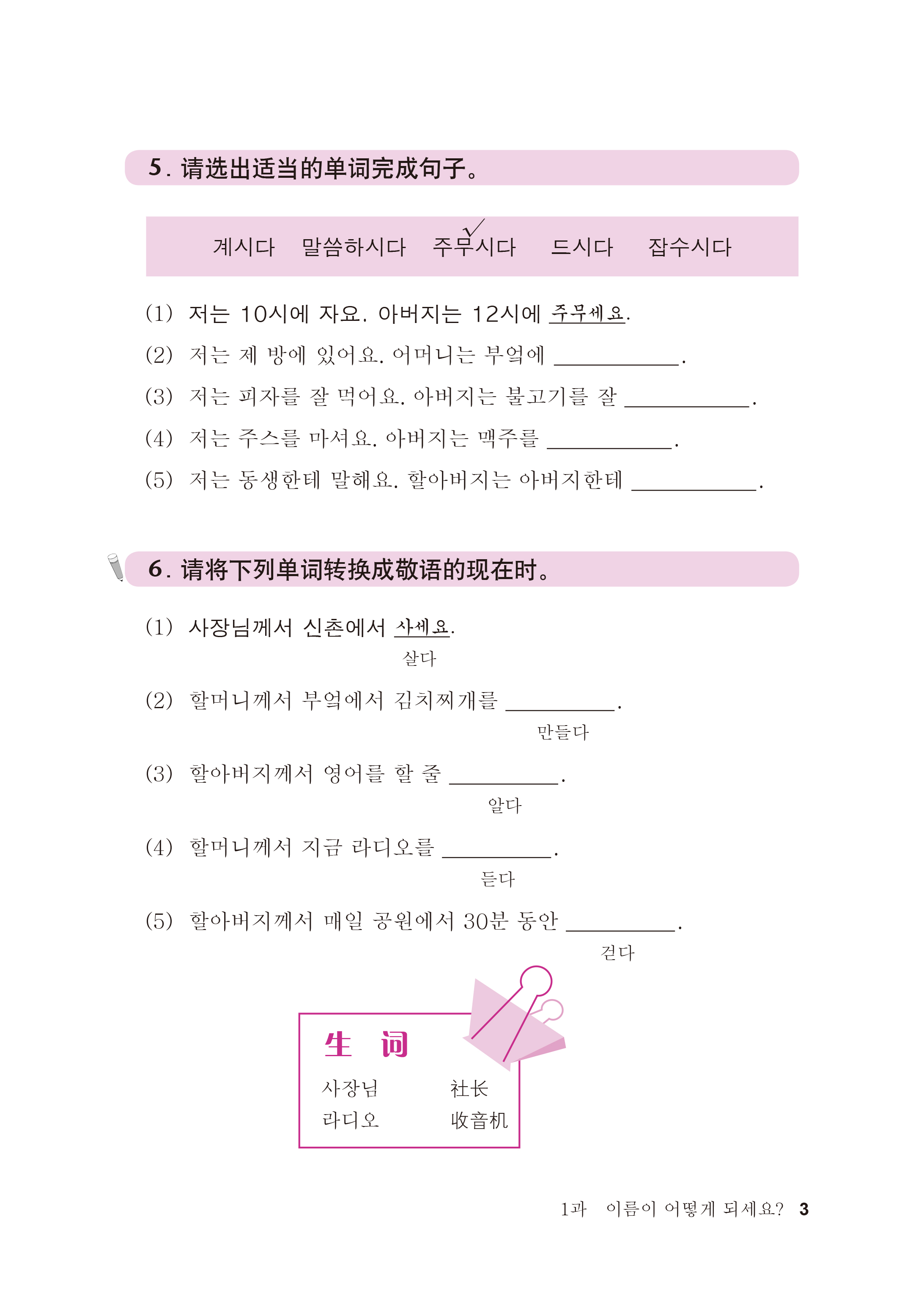 本练习册内容丰富,以初中级语法知识为主,包括主教材16课每一部分的单元练习,逐步提高学生应用韩国语初中级语法的能力。
