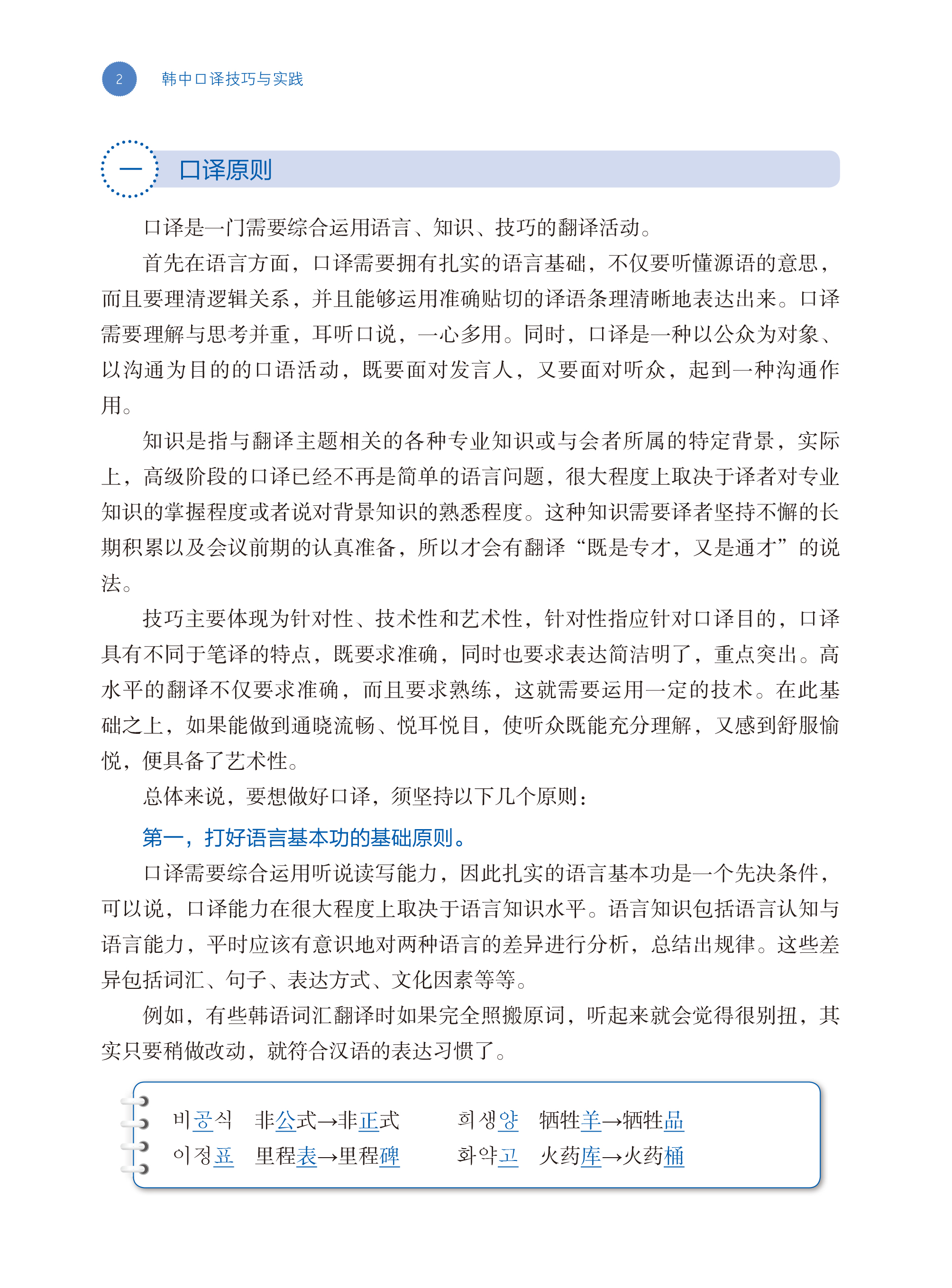 《韩中口译技巧与实践》为朝鲜语专业本科口译课教材,也可以作为MTI朝鲜语翻译硕士基础口译教材。