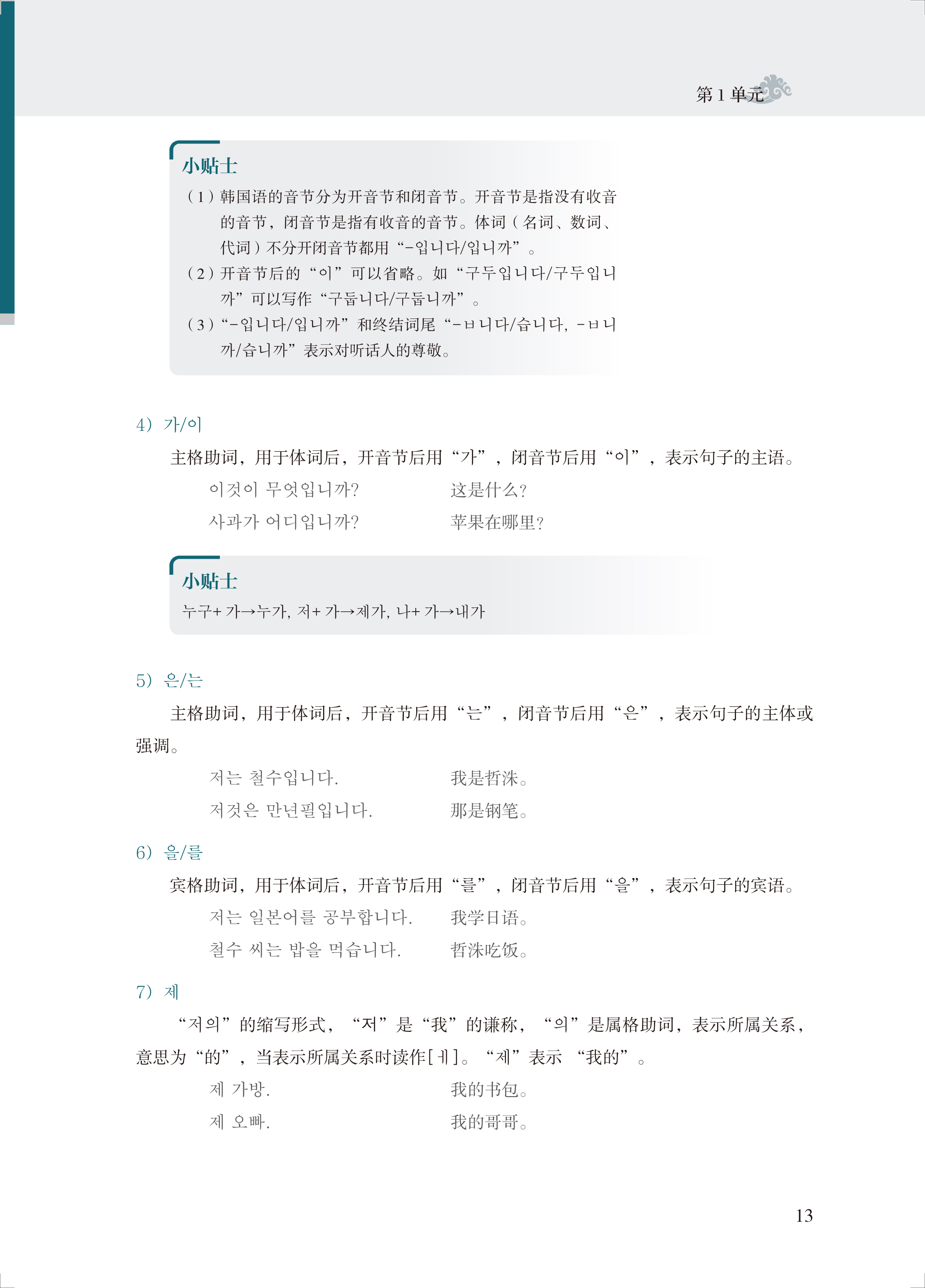 《首尔大学韩国语1自学一本通(词汇、语法、测试)》是《首尔大学韩国语1》的配套辅导用书。预备篇针对原教材的语音部分,1-10单元针对原教材的课文部分,每一单元为原教材三课的总结复习。预备篇详细讲解了韩文的创制过程、书写方法和韩国语的发音要领。同时配有大量语音练习题,供读者巩固所学知识。1-10单元每个单元都分为单元重点、补充知识和单元练习三个部分。单元重点包括重点语法、重点词汇和重点句型三部分,该部分是对单元重点内容的详细讲解。在重点语法部分设置了小贴士模块,将学生需要着重记忆的语法知识放在了该模块中。补充知识主要是与韩国语的语言特点和韩国文化相关的内容,该部分的目的是让读者更加深入地了解韩国语和韩国文化。单元练习是针对三课的知识要点给出的习题,意在使读者复习巩固重点内容。单元练习和主教材课后练习题答案放在了附录中。