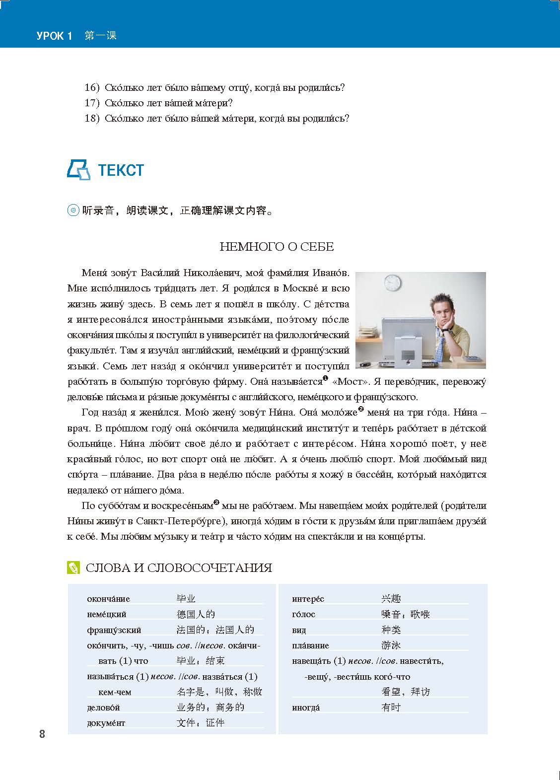 本书是供俄语专业大学生一年级第二学期精读课使用的教材。主要内容是基本的语法,日常词汇和句型及课文。包括自我介绍、家庭、运动、交通、休闲等12个话题。