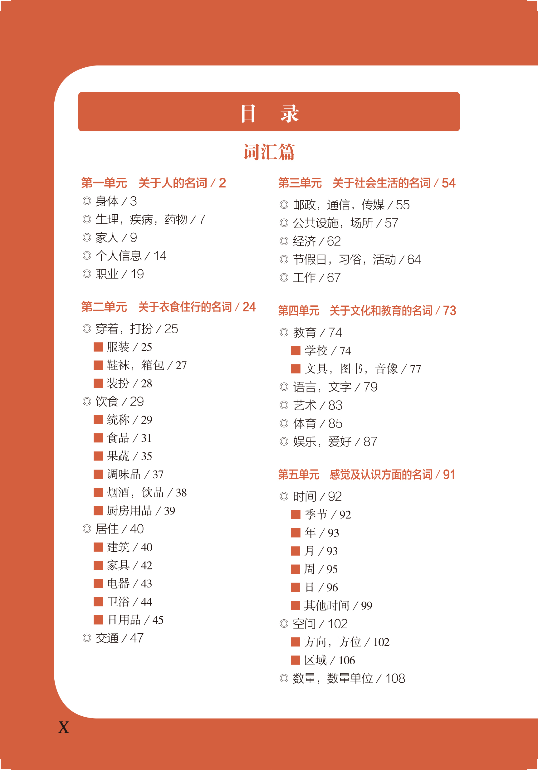 《新韩国语能力考试初级词汇语法红宝书》收录了新韩国语能力考试初级常用词汇及语法。词汇篇按照名词、代词、数词、动词、形容词、冠词、副词、感叹词分类,每个类别又按照词义具体分类,并以单元的形式呈现。每个词条后附有例句和译文,以便学生更好地理解词汇的意义。而且为了扩展学生的知识量,每个词条后还补充了反义词、同义词等相关词汇和惯用型、俗语、谚语等相关联的知识点。语法篇分为连接词尾、终结词尾、其他词尾、惯用型、助词五个单元。每个语法点后附有例句和译文。