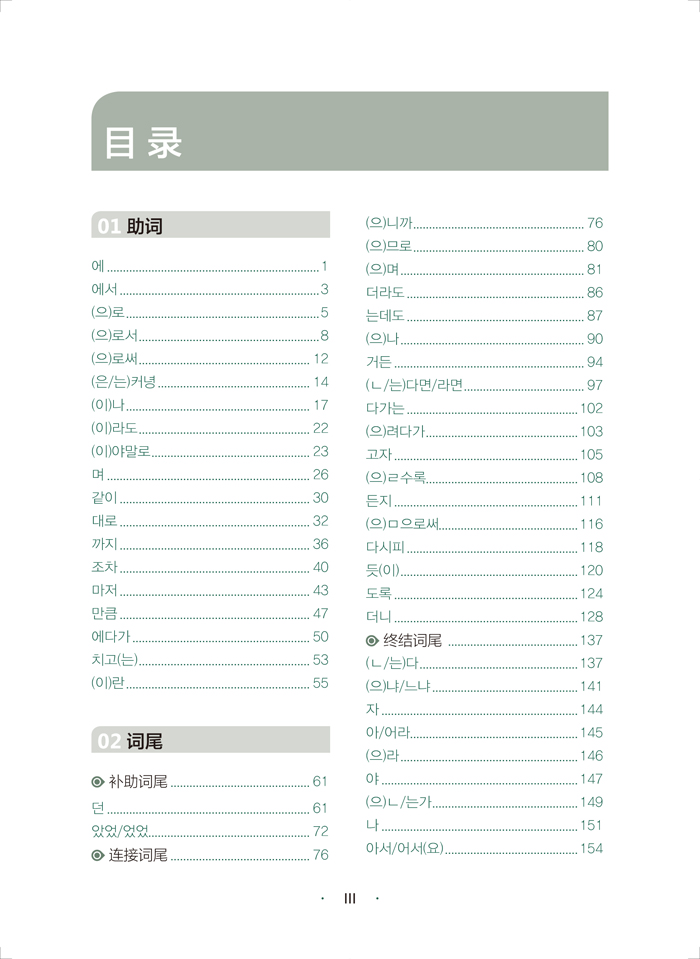 《韩国语实用语法教程中级 NEW TOPIKⅡ必备语法+实战训练》精选出学习者在学习韩国语的中级阶段必须掌握的150个语法点,包括助词(19个助词)、词尾(41个词尾)和惯用型(90个惯用型)三个部分,对其进行详细的讲解,深入挖掘语法点的深层含义,便于学习者理解和记忆。同时在多个语法点之间建立联系,减轻学习者记忆的负担。在讲解语法点时,列举大量例句,帮助学习者在具体的语境中理解语法的内涵。