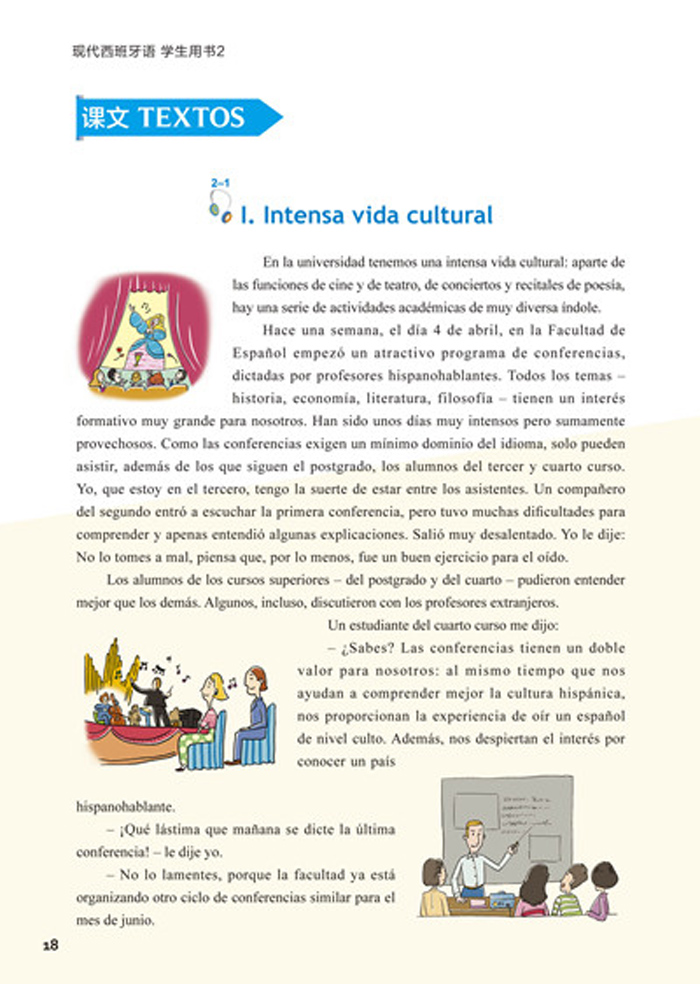 语言纯正地道:内容由西语外籍专家审定,并对课文、语音、词汇及部分练习进行录音,使学习者领略西班牙及拉
